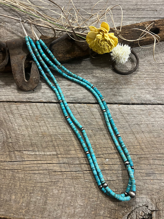 Turquoise Graduated Heishi Double Strand w/ Navajo Pearls